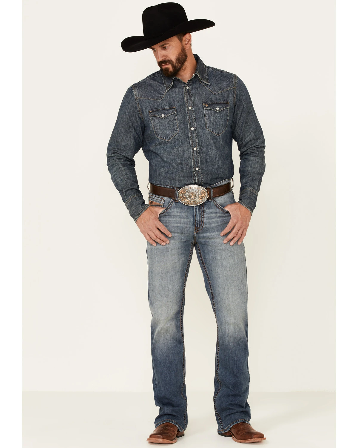 - Criss cross stitching on back pockets