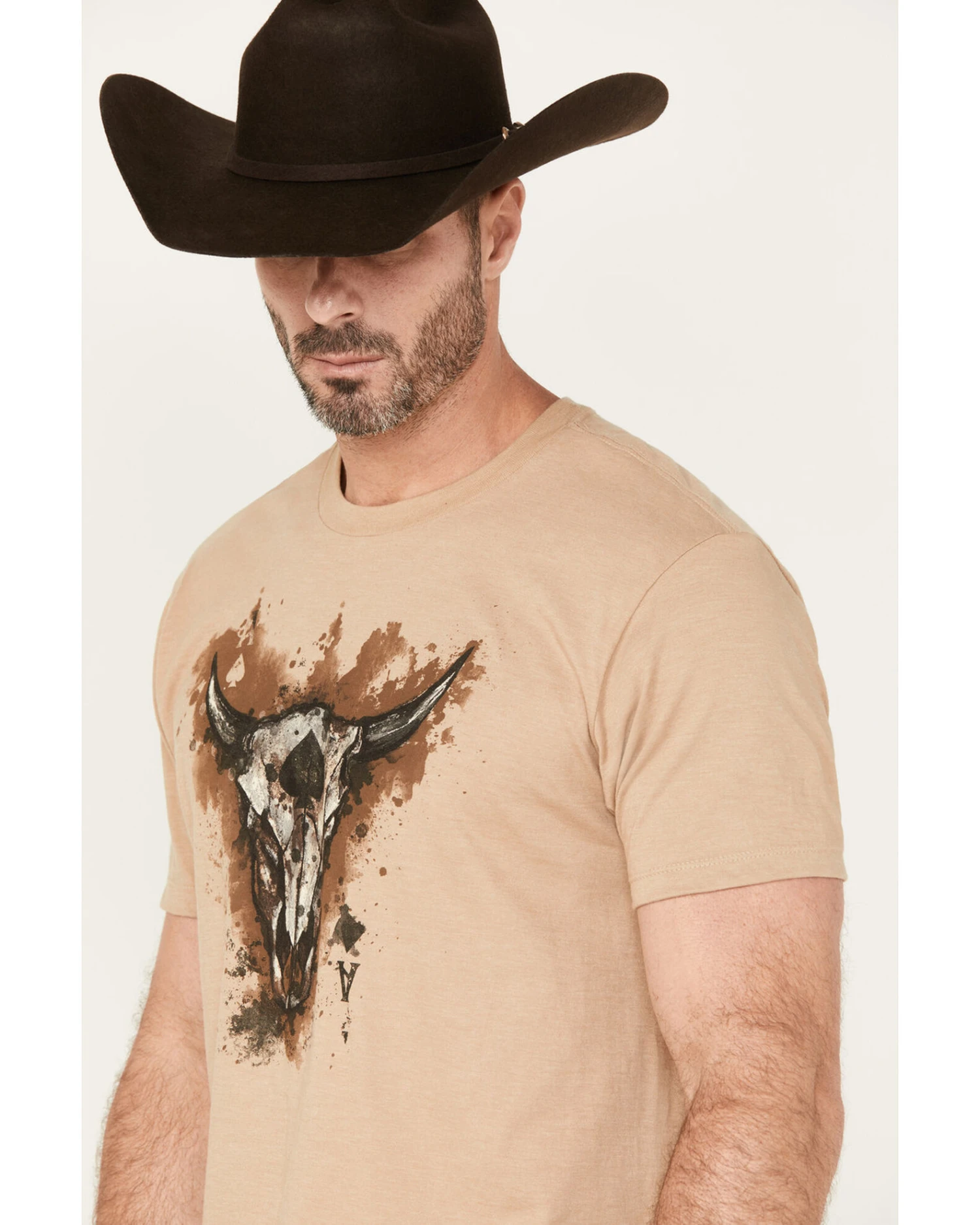 - Painted steer head skull playing card graphic on front